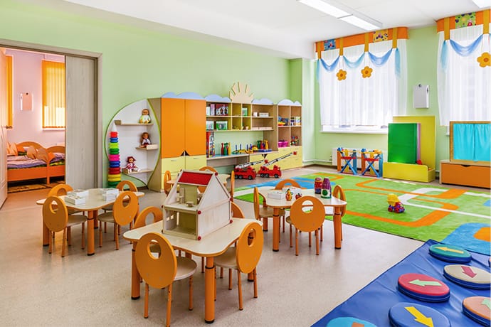 子どもたちを守る、幼稚園の入口に時間を守るドア